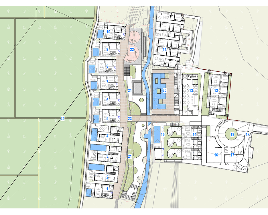 A mixed-use complex combining villas, suites, and townhouses — a true “city within a city.”